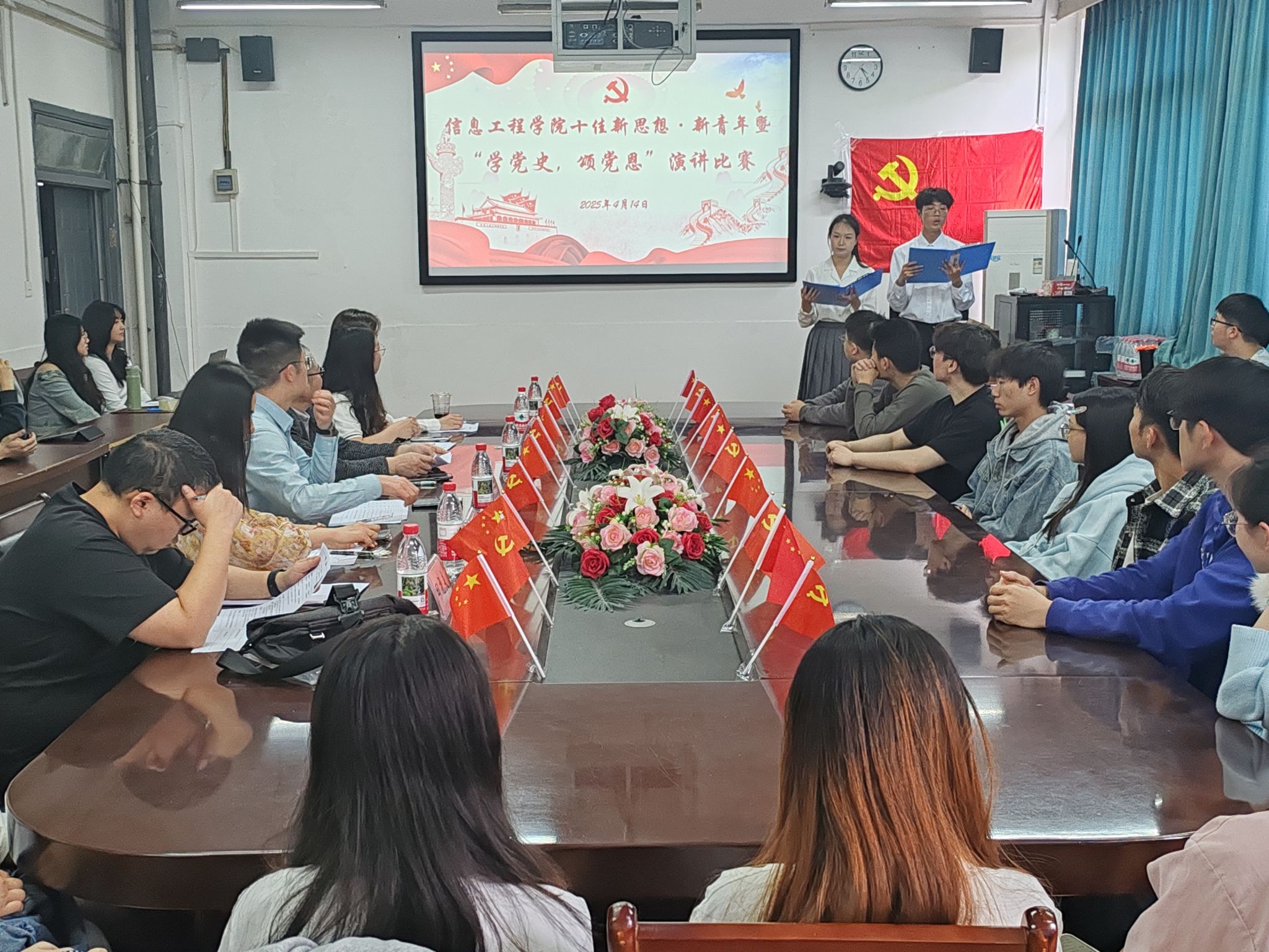 为推动党史学习教育常态化、长效化,2025年4月14日16:20,公司党委举办了“十佳新思想·新青年”评选暨“学党史,颂党恩”演讲比赛。此次活动以深情回顾党的百年奋斗征程和伟大成就为主线,旨在增强青年员工的政治意识、厚植爱党情怀。公司党委书记王中成老师,党委副书记、纪委书记葛飞老师,以及党委办公室全体辅导员老师担任本次大赛的评委。