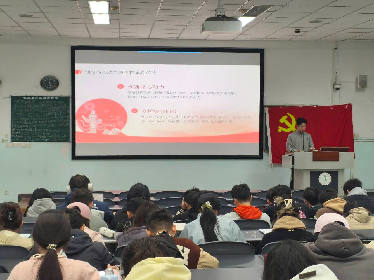 会上,姚程同志带领与会党员系统学习了党的二十届四中全会精神的深刻内涵与时代价值。他强调,全会精神为发展新质生产力、推进中国式现代化提供行动纲领,明确了各领域发展目标任务,具有鲜明的时代性和理论引领力。围绕“创新赋能乡村振兴”核心议题,他指出创新与乡村振兴深度联动是城乡高质量发展和民生保障的关键,鼓励全体党员同志深入落实总书记“把论文写在祖国大地上”的殷切嘱托,积极响应知农爱农的时代召唤,并通过青年党员扎根基层、科技助农的先进事例号召全体党员勇担时代使命,争做时代强农的坚定践行者、务实行动者、先锋引领者。