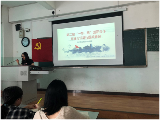 学习结尾,大家一起观看了4月27日上午国家主席习近平主持第二届“一带一路”国际合作高峰论坛论领导人圆桌峰会第一阶段会议并致开幕词的视频资料。(文、强鑫欣 审、尹华祺)