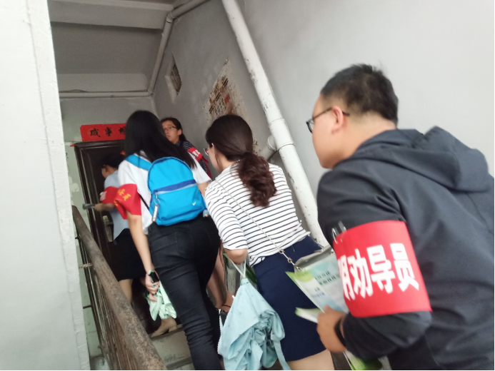 下午14:20,志愿者按照预先的通知,在西大街社区集合,由王媛同学带队,在西大街社区工作人员的带领下,志愿者开始在西大街社区下属街道进行走访。