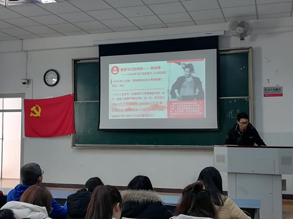 吴俣昊同志就“优秀共产党员先进事迹”主题,介绍了永远的巴山红叶王瑛同志、羌山忠魂兰辉同志、农民将军甘祖昌同志、“长”在群众中的“老县长”高德荣同志,他们都在用自己的行动践行党的方针与路线,真正诠释了党员所代表的内容实质与精神内涵。