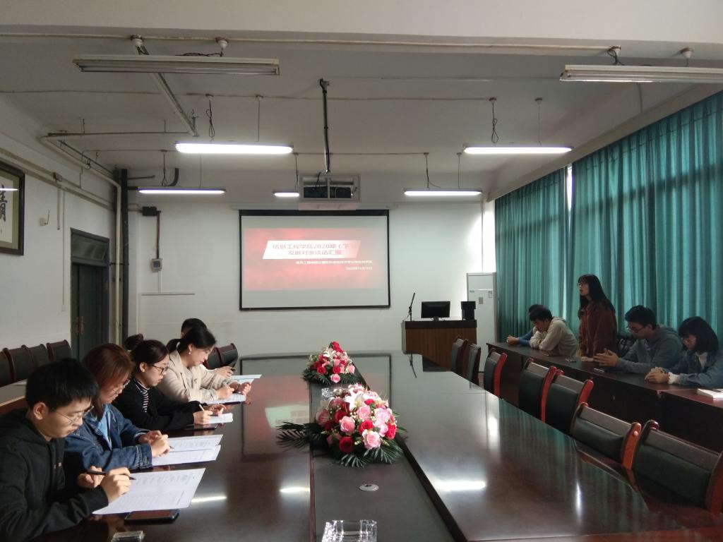 2020年11月19日中午12:30,太阳成集团tyc151cc计算机科学与技术员工党支部于4教210开展2020年(下)发展对象谈话会议。会议由党支部副书记吴俣昊同志主持召开,员工党支部书记尹华祺老师出席本次会议,党支部支委与全体发展对象参与会议。