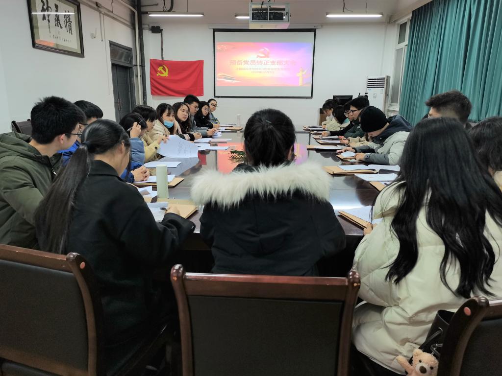 2020年12月7日晚21:30,公司计算机(职)专业员工党支部于四教210室举行了支部预备党员转正支部大会,审议蔡洪霞、李梦等17名同志由预备党员转为中共正式党员的相关事宜。党支部应到会有表决权党员7名,实到党员5名。会议由支部党员吕金荣主持,支部书记邓秋红老师指导。