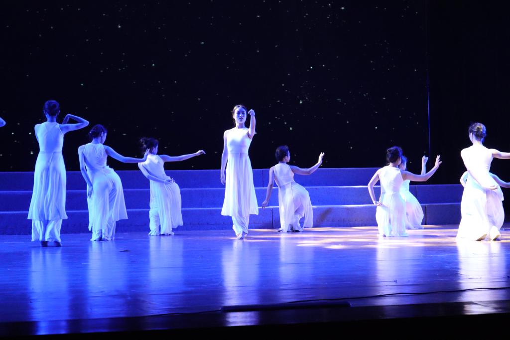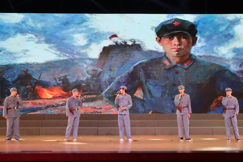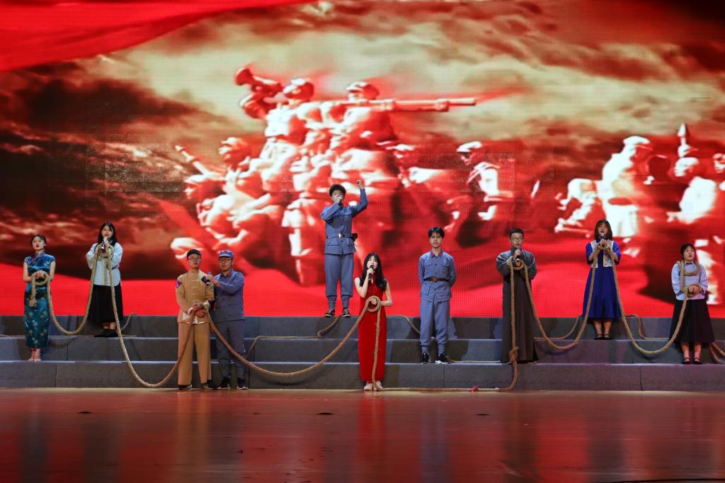 特别邀请的老员工艺术团的表演唱《游击队之歌》和《十送红军》生动传达了红军英勇善战,以及和百姓在战争年代的深情厚谊;还有校舞蹈团的舞者们裙角飞扬,舞姿翩跹,用现代舞《追寻》表达了党和人民对革命理想的崇高追求和战争胜利的无限期望。
