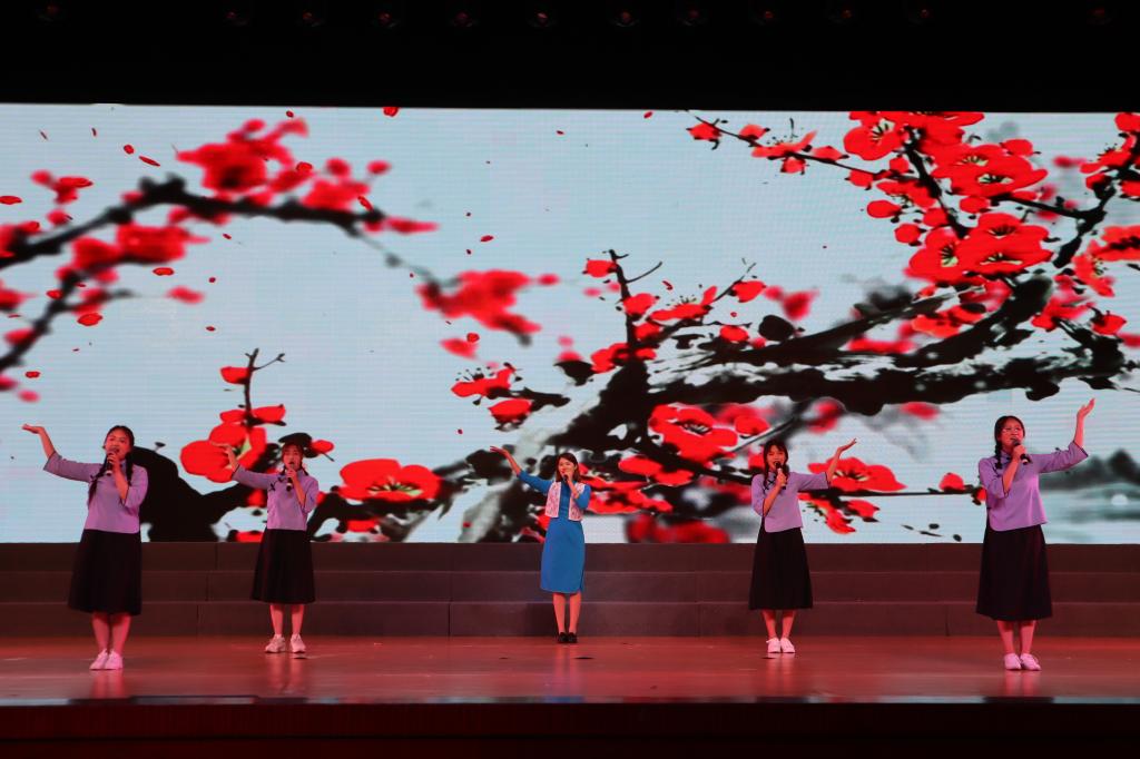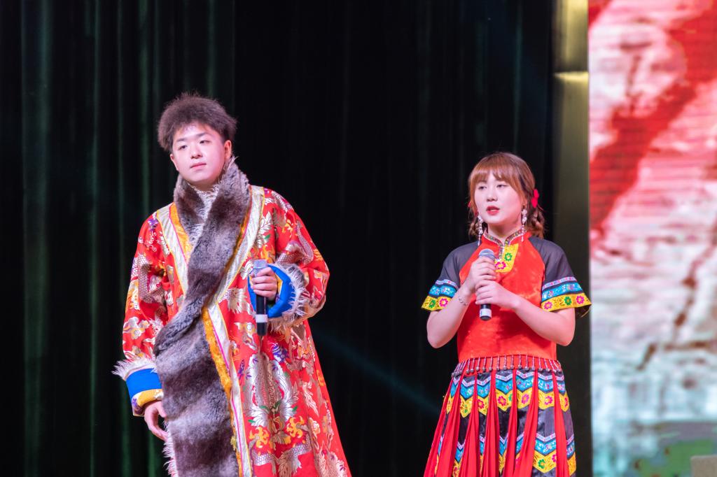 晚会在《唱支山歌给党听》悠扬婉转的歌声中徐徐拉开序幕。在“不忘初心”篇,由2021届毕业生蔡劲涛和他的朋友倪郅恒带来慷慨激昂的《国际歌》,富有电音动感的演唱瞬间点燃全场,令观众们热血澎湃;师生合唱一首《映山红》,情感细腻深沉,唱出了生活在黑暗之中的苏区人民渴盼红军归来的强烈心声,以及苏区人民与黑暗势力殊死搏斗的革命意志;歌曲《红梅赞》则将观众思绪带到曾经战火纷飞的峥嵘岁月,“三九严寒何所惧,一片丹心向阳开”深情讴歌了以公司员工江竹筠烈士为代表的革命先辈英勇顽强,不怕流血牺牲,一心报国的英雄主义精神。