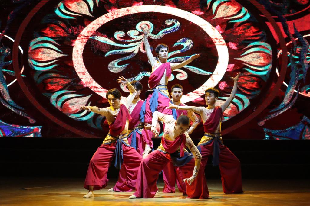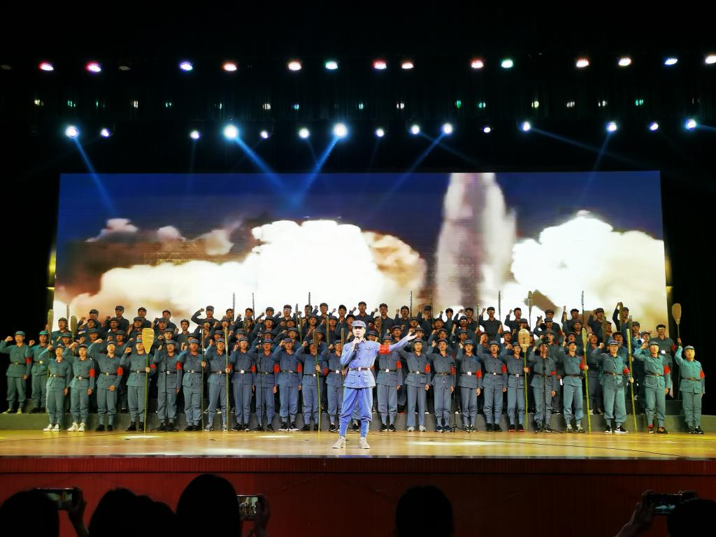 在“砥砺前行”篇,公司师生代表精心编排百人大合唱《人民解放军占领南京》,将晚会气氛掀至高潮。掷地有声的诗句、激昂高亢的节奏、戏剧传神的表演无不表达出人民解放军解放南京的革命豪情。“钟山风雨起苍黄,百万雄师过大江”的雄浑豪壮深深感染了观众,引得场内爆发雷鸣般的掌声。节目《革命理想高于天》用诗歌朗诵的艺术形式传达了先辈们甘为革命抛头颅、洒热血的坚定信念;灯光打在被绳索束缚的8位革命英雄扮演者的脸上,他们眼含热泪,字字泣血,悲怆高亢却又无怨无悔。历史的浪潮奔涌向前,时间来到21世纪,男子群舞《丝路回响》用生动的民族舞蹈语汇,将观众的思绪从中国古代丝绸之路,拉回到如今已和171个国家和国际组织签署合作的“一带一路”;歌曲《少年》《青春恰自来》青春气息扑面,尽显蓬勃朝气,也饱含对即将远行毕业生的美好祝福。