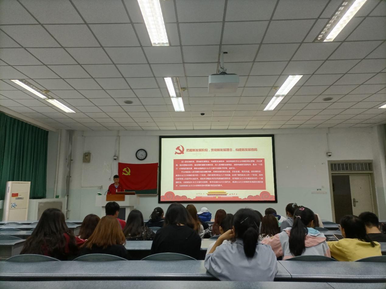 在加快构建新发展格局部分,梁馨月同学以历史足迹为依据,深入解释了加快构建新发展格局的重要意义和科学内涵,全面落实加快构建新发展格局的决策部署的六大要点,加强党对社会主义现代化的全面领导的必要性。同时,她讲到我们应当深入学习、坚决贯彻党的十九届五中全会精神,增强政治意识,善于从讲政治的高度思考和推进经济社会发展工作。【文:梁馨月 /图:陈骏扬,梁馨月/审:向建桦】