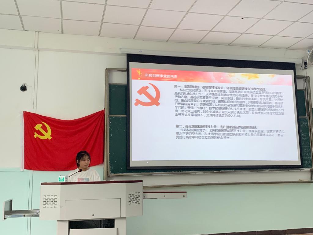 本次政治学习在张昕怡同志对科技创新事业发展历程,科技创新事业发展成就的讲解中拉开帷幕。她重点讲到了革命时期、新中国成立时期、改革开放时期,新世纪时期以及党的十八大以来我国科技创新事业的发展历程,并指出党的领导作用是我国科技取得重大成就的决定性力量。接着,张昕怡同志还分享了我国在基础研究和原始创新领域、战略高技术领域、民生科技领域,高端产业领域以及国防科技领域的一系列重大成就,并指出我国科技的突破性发展在此次疫情中发挥了重要作用,为疫情防控、复工复产等提供了有利的技术支持。