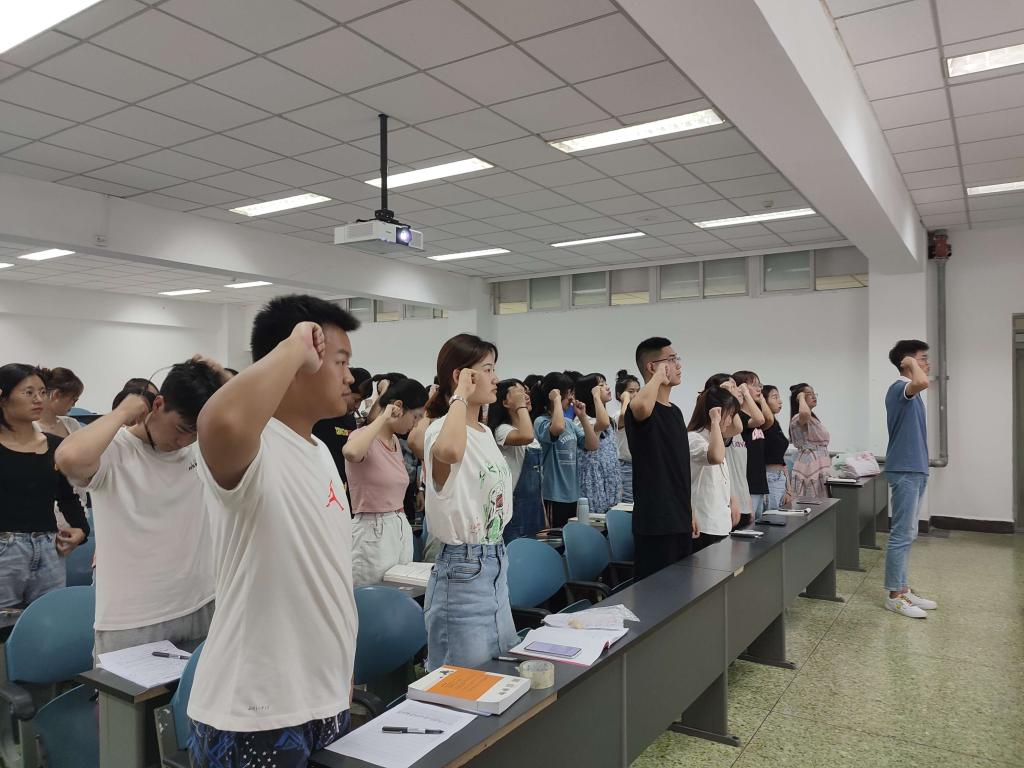随后,由丁家雄带领全体同志在党旗下庄严宣誓,重温入党誓词。