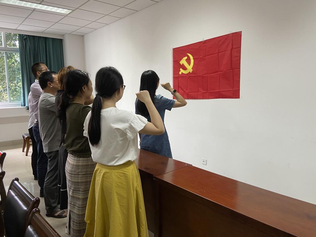 会上由党支部书记陈晓燕领誓,带领全体党员同志重温了入党誓词。