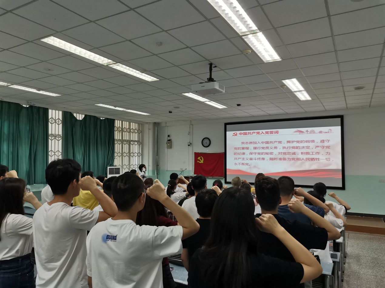 大会第一项,重温入党誓词,由党支部书记尹华祺同志领誓,全体成员肃立,面向党旗,庄严宣誓。大会第二项,由倪申武同志作为领学者,带领支部成员进行“四史”专题学习,通过PPT讲解、观看相关视频以及自由讨论的形式,从“什么是‘四史’”、“四史的内涵”以及“为什么要学习四史”三方面总体地介绍了本次会议的主题。倪申武同志在会议中详细地讲解了党史、新中国史、改革开放史以及社会主义发展史的意义与内涵,并突出强调学习“四史”是一种传承,是要找回我们的信仰,是要从中汲取经验和智慧。