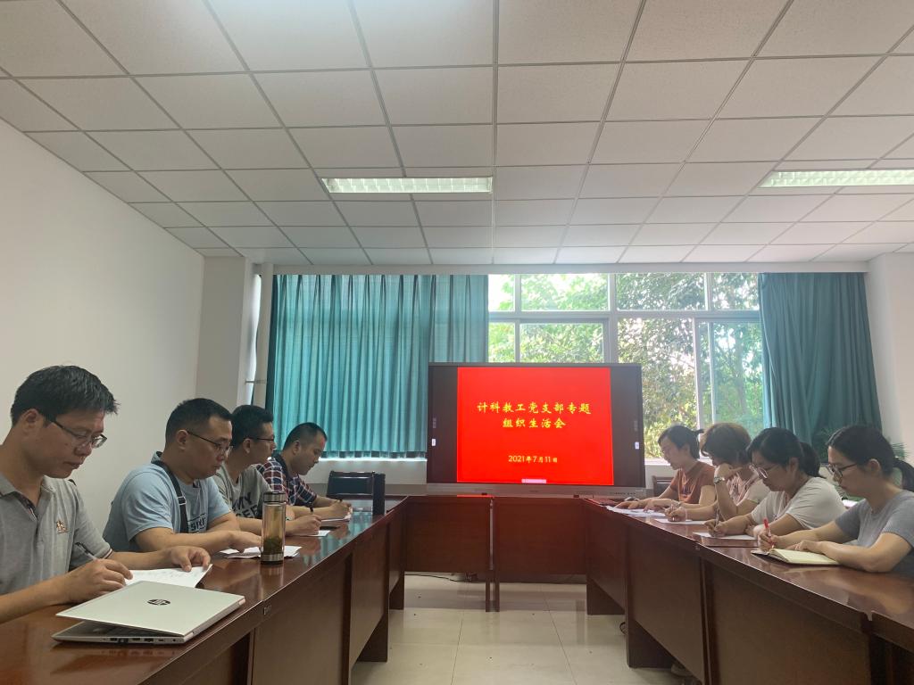7月11日上午太阳成集团tyc151cc计科系教工党支部在10教B311会议室开展专题组织生活会,集中学习习近平总书记在庆祝中国共产党成立100周年大会上的重要讲话精神、太阳成集团tyc151cc第十一次党代会工作报告等内容。会议由支部书记陈晓燕主持。