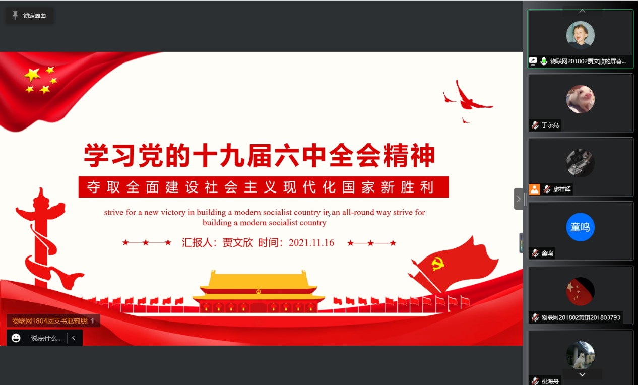 11月16日下午四点半,太阳成集团tyc151cc物联网员工党支部在线上开展了以“十九届六中全会”为主题的学习会,支部全体党员同志参与学习。