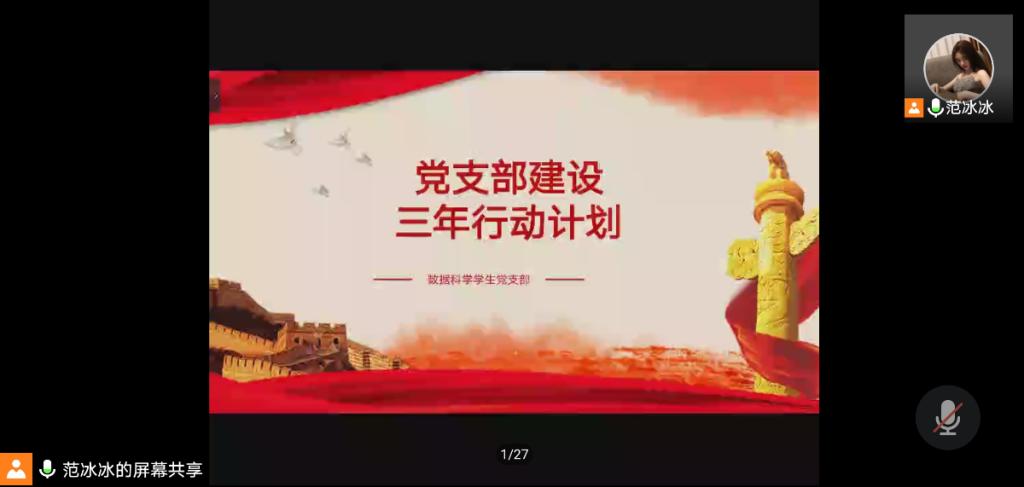 随后,数据科学员工党支部副书记范冰冰同志就党的指导思想、基本原则与主要步骤等多方面讲解了2021-2023 年党支部建设三年行动计划,同学们也纷纷表示支持。【图/文:梁馨月 审:向建桦】