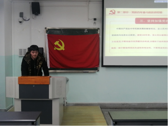 11月30日,数据科学员工党支部在1教405室开展主题为“党的百年奋斗重大成就和历史经验”的政治学习活动,由罗赵野同学担任主讲人。