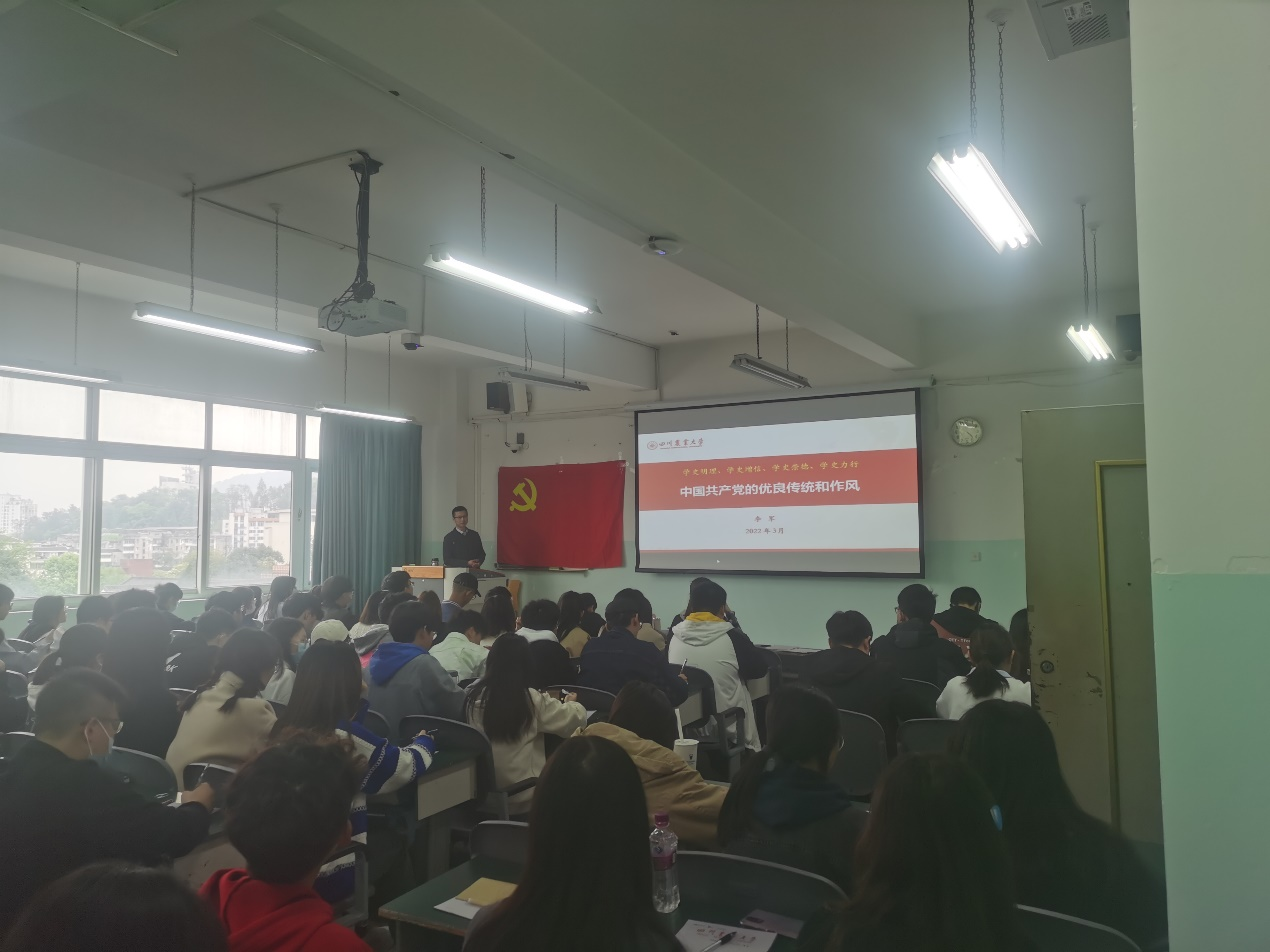 本讲党课以“中国共产党的优良传统和作风”为主题。李军从党校学习的原因入手,结合党的历史和同学们作为新时代接班人的身份,告诫学员们喝水不忘掘井人,学员们应当从中树立正确的三观,培养坚韧的品格。随后从党的建设和发展历史出发,向学员们详细的讲解了党的三大优良作风,即“理论联系实际”,“密切联系群众”,“批评与自我批评”。