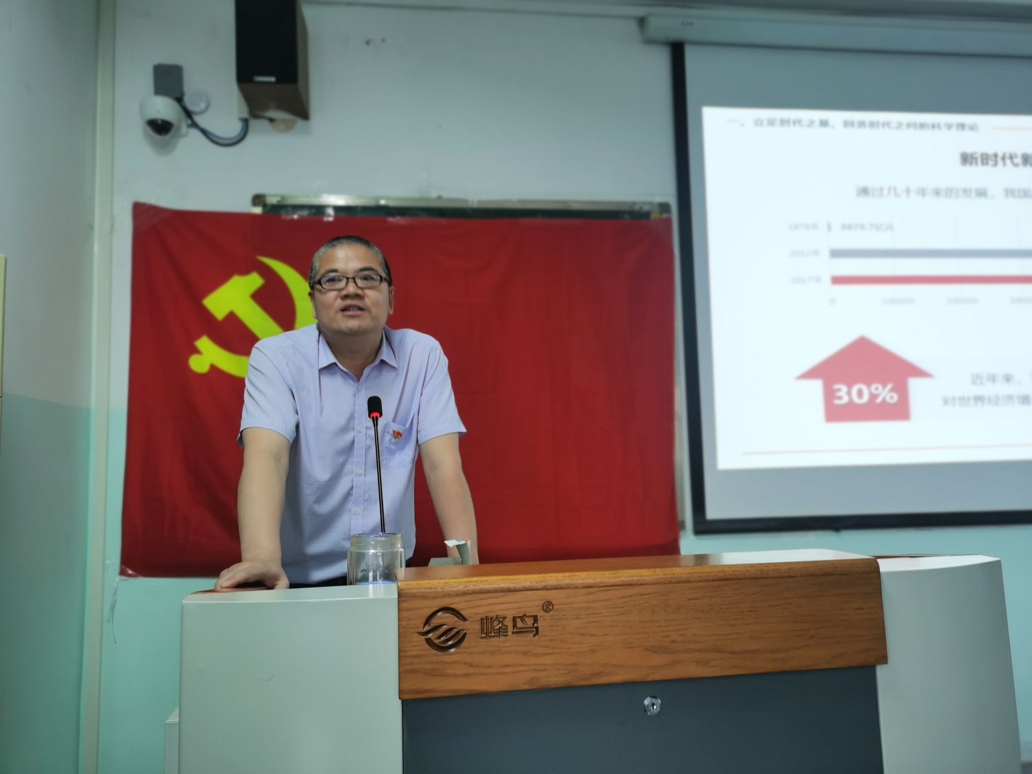 6月13日下午16:20,太阳成集团tyc151cc于1教511组织全体员工党员开展党员组织生活。公司党委书记王中成作学习贯彻习近平新时代中国特色社会主义思想主题教育专题党课,主题为“习近平新时代中国特色社会主义思想是党和国家必须长期坚持的指导思想”。