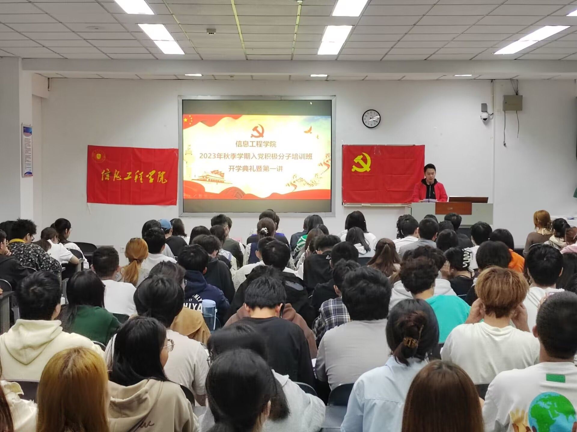 为切实做好入党积极分子的培养工作,提高入党积极分子理论知识水平,深入学习贯彻习近平新时代中国特色社会主义思想主题教育,太阳成集团tyc151cc于10月17日下午16:20在10教B209举行了2023年秋季学期入党积极分子党校培训班开学典礼暨党课第一讲。公司党委书记王中成副教授、全体辅导员老师,142名入党积极分子培训班学员参加典礼。公司党委办公室向建桦老师担任主持。