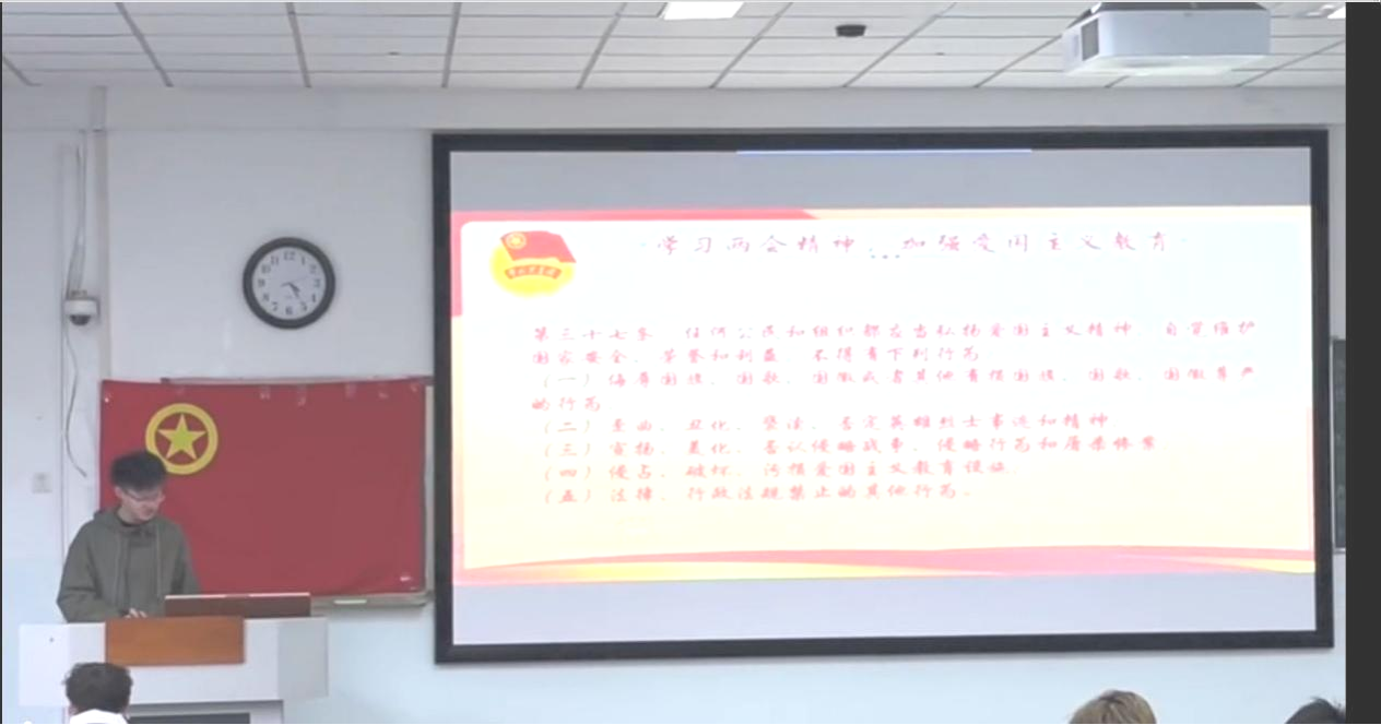 为深入学习贯彻习近平总书记在全国两会上的重要讲话精神,加强安全教育宣传,进一步巩固寒假社会实践成果,激励团员青年在强国建设和中国式现代化新征程中发挥先锋模范作用,大数据 202203、大数据 202204、大数据 202205、物联网 202101、物联网 202203、物联网 202204、物联网 202205七个团支部于3月17日在十教A201成功开展了“展01205模范作用,大数据国两主题班团活动。