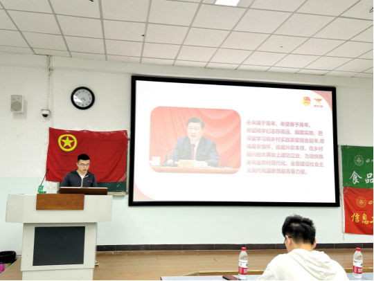 本次班团活动旨在引导青年员工深刻感悟党领导中国青年运动的光辉历程,引导广大团员和青年深入学习贯彻习近平总书记关于青年工作的重要思想、总体国家安全观、习近平总书记关于劳动的一系列重要论述等内容,厚植川农青年爱党爱国情怀。“我们是五月的花海,用青春拥抱时代……”,本次班团活动在参会同学合唱团歌的歌声中拉开序幕。