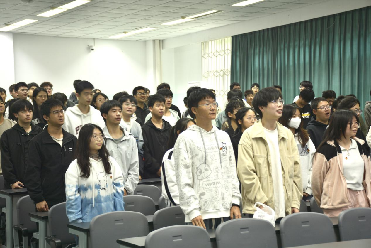 活动在激昂的团歌中拉开序幕,全体同学歌声嘹亮,似青春的号角奏响,瞬间点燃了现场热烈的气氛。
