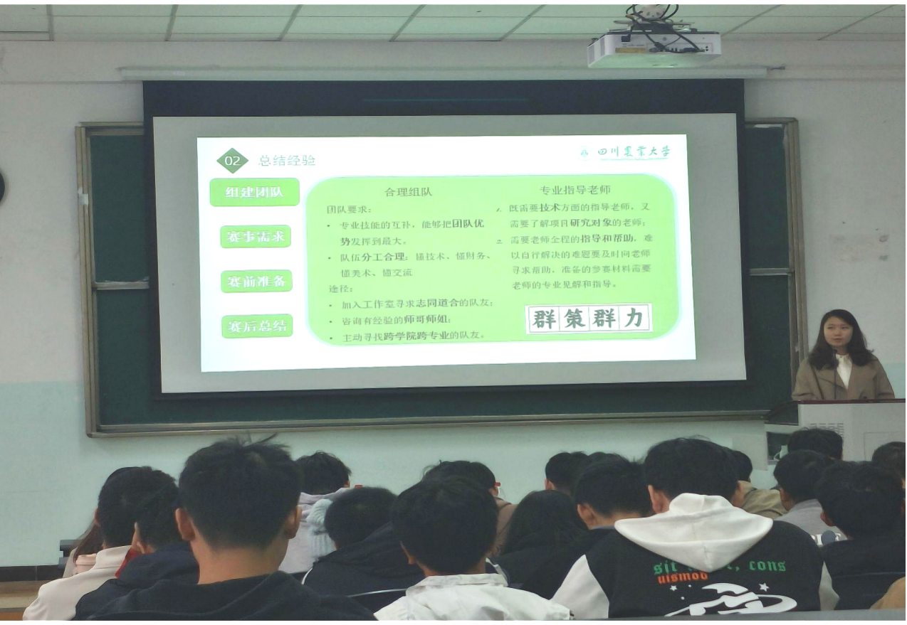 在“实践绘梦青春里,榜样引领未来时”的环节中,科创团队的负责人樊亚敏、装备大赛团队的负责人肖如真以及实践团队的负责人胡钰楠依次上台,分享了他们在各自领域的宝贵经验与丰硕成果。他们的话语中充满了对创新实践的执着追求和对社会问题的深切关注,极大地鼓舞了在场的同学们,激发了大家投身实践、勇于创新的热情,同学们纷纷表示深受启发,收获颇丰。