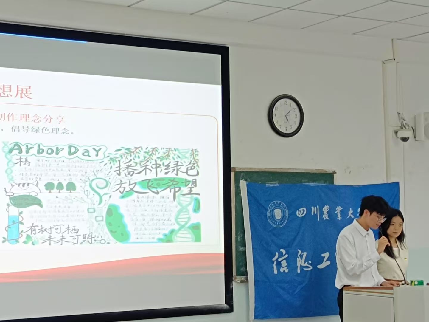 在“实践展青春,奉献书华章”环节,前期白鸽团队分享后,李信贤同学围绕“青春,奋斗,奉献”展开讲解,他表示,同学们应该以奋斗为青春底色,让奉献赋予青春意义,推动乡村振兴和农业发展,贡献出自己的一份力量。