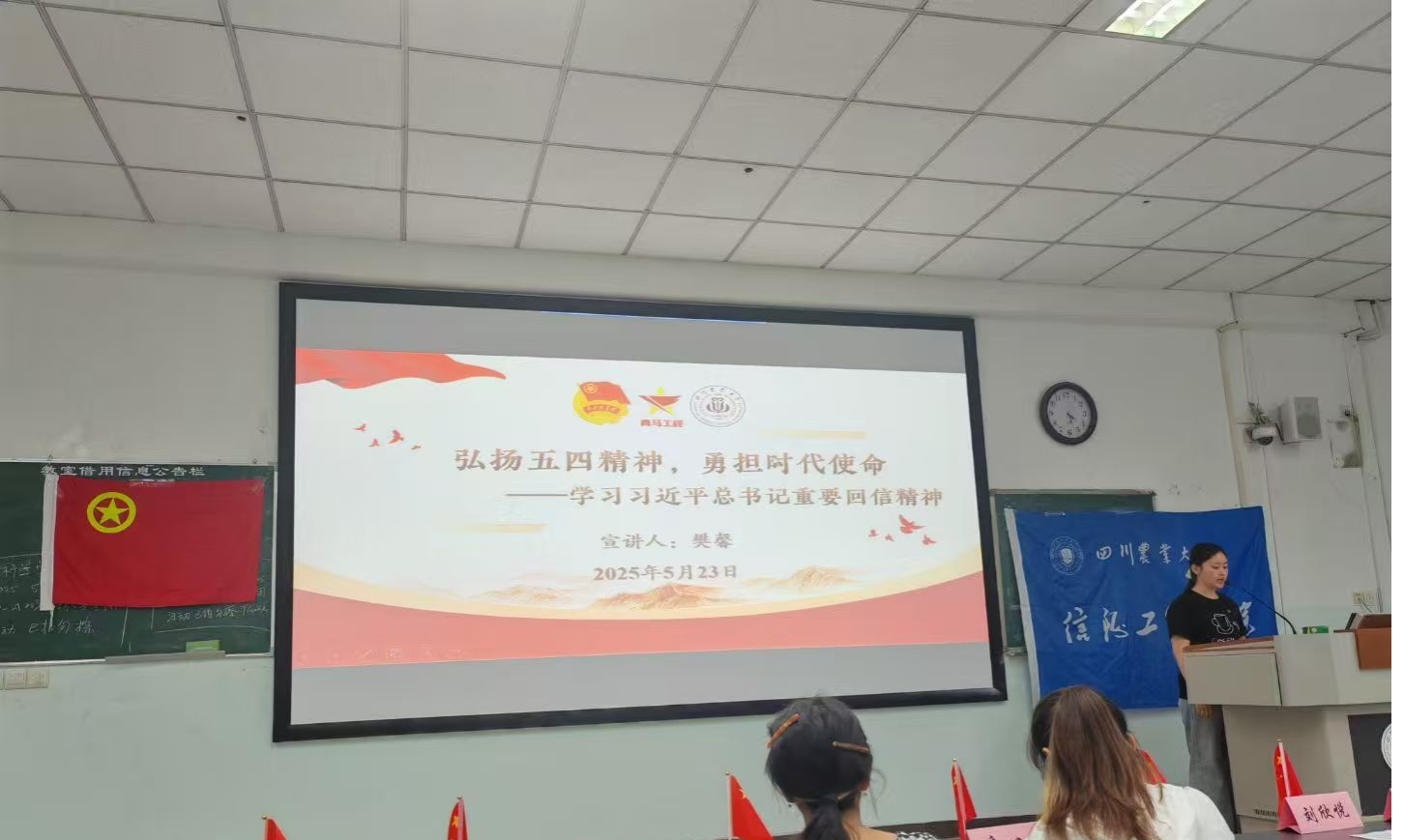 活动以“承五四薪火,悟回信精神”开篇,由青马班成员樊馨带领学习“回信精神”专题宣讲。她结合科技兴农案例,深入解读总书记对青年“在奋斗中绽放青春光彩”的殷切嘱托,强调青年成长应与国家发展同频共振。此次宣讲弘扬了西部计划精神,引导广大团员“到祖国最需要的地方去”。