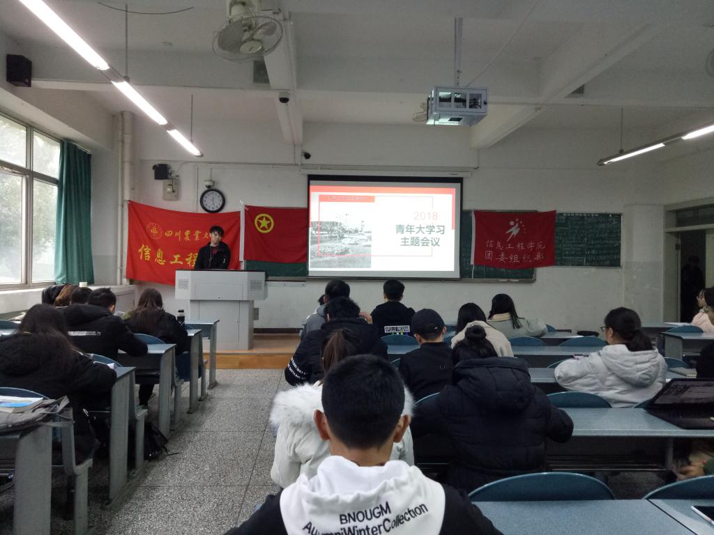 2018年12月7日12:30,太阳成集团tyc151cc团委组织部于育新楼A210顺利召开“青年大学习”主题会议。会议由组织部委员杨子璇和干事黄瑶主持,2016、2017、2018级各团支部团干代表参与此次会议。