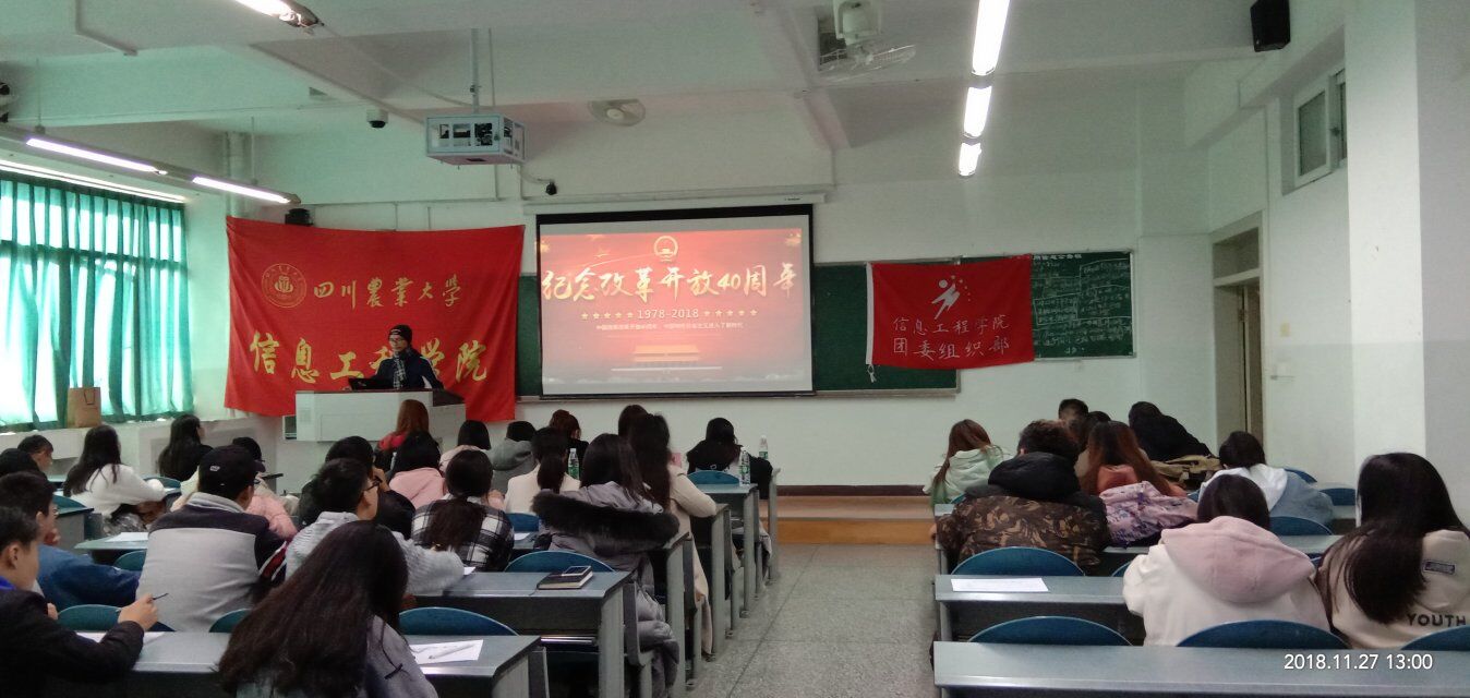 在讲解完评比规则后,由黄敬程展示各团支部新媒体作品,现场评委根据活动主题、活动创意、活动意义、团员参与度和作品质量五个方面进行打分。各团支部作品各具特色,主要以微视频和PPT为主,兼有少量H5网页作品,其作品围绕“改革开放40年”、“党的十九大”、“团的十八大”三大主题,展现了形式多样、极具创意的团日活动。