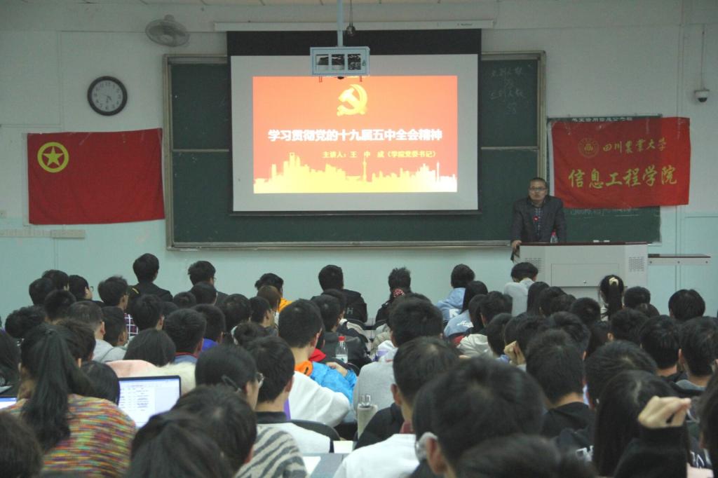 王中成首先从党的十九届五中全会的基本概况讲起,指出此次会议在“两个一百年”进入历史交汇点的关键时期,“十三五”规划和全面建成小康社会的收官之年召开,是以国民经济和社会发展第十四个五年规划、二〇三五年远景目标为主要内容的一次具有历史性意义的重要会议。他分别从决胜全面建成小康社会决定性成就的工作回顾、我国发展环境面临的深刻复杂变化、到二〇三五年基本实现社会主义现代化的远景目标、“十四五”时期经济社会发展指导思想和必须遵循的原则、“十四五”时期经济发展的主要目标以及会议提出的十二项重要举措六个方面对会议精神进行了详细的解读与介绍。从当下老员工的实际情况出发,王中成激励同学们要扎实掌握专业知识,积极参加竞赛,培养创新意识和能力,在德智体美劳等方面全面发展自己,积极响应国家号召,做一名合格的共青团员,一名合格的国家建设者和贡献者。他强调,当下的老员工应积极培养政治意识,提高政治鉴别能力,提高对政治的敏锐度和洞察力,关心国家大事,学习党和国家政策。