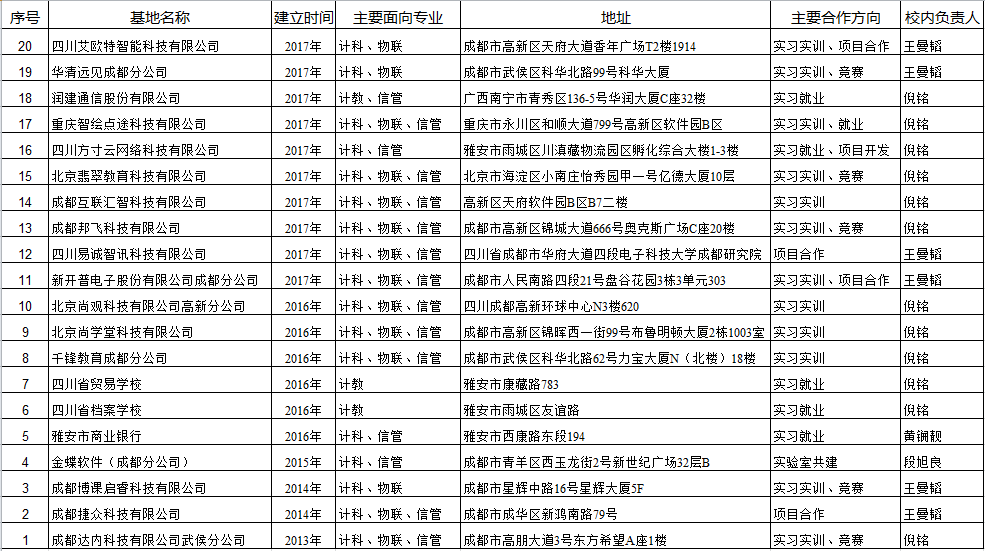 太阳成集团tyc151cc校外实习实训基地统计表