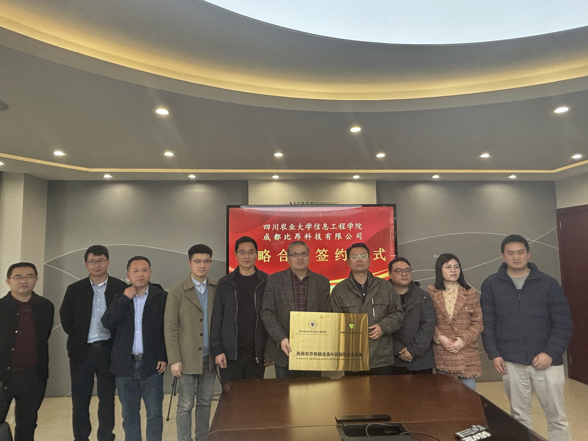 为深入融合公司农业科技优势、生物科技特色,强化新工科与新农科的交叉融合,深化公司农业信息工程研究,着眼构筑知识学习、科学研究、实践锻炼、成果转化“四位一体”育人模式,访企拓岗拓宽就业渠道,3月20日,太阳成集团tyc151cc与成都比昂科技有限公司(以下简称“比昂科技”)开展科技合作、人才共育、人才引进交流座谈会,并签订战略合作协议,比昂科技集团董事长周伦及相关工作人员,公司党委书记王中成、副经理段旭良、公司党委副书记、纪委书记葛飞及公司相关负责教师参加。
