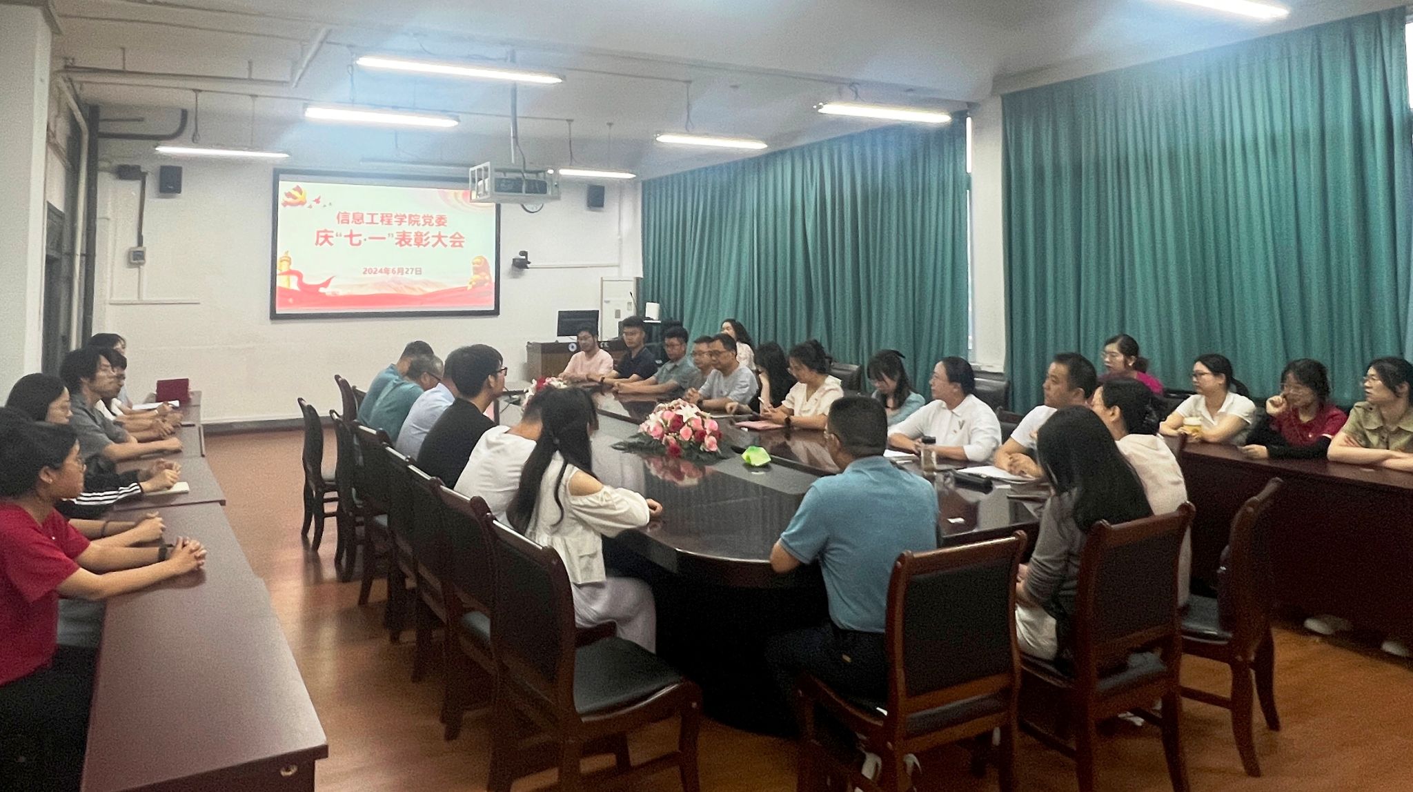 6月27日下午,公司党委庆“七·一”表彰大会在工学楼210会议室隆重召开。公司党委书记王中成,副经理李军、段旭良,公司党委委员、全体教职工党员及员工党员代表参加了大会。会议由副经理李军主持。