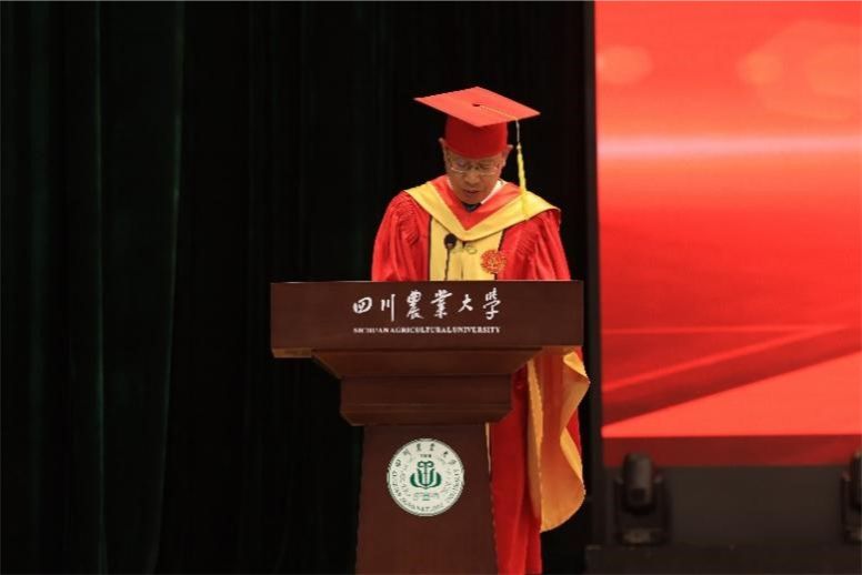 已保研至清华大学、数据科学与大数据技术专业2021级1班的柳黛鲜同学代表全体毕业生发言,她深情回顾了四年的求学经历,表达了对母校、师长及家人的感激之情。她表示,将永远铭记川农大精神,以“德信立人、以工成事”的院训为指引,勇敢追梦,继续谱写青春华章。
