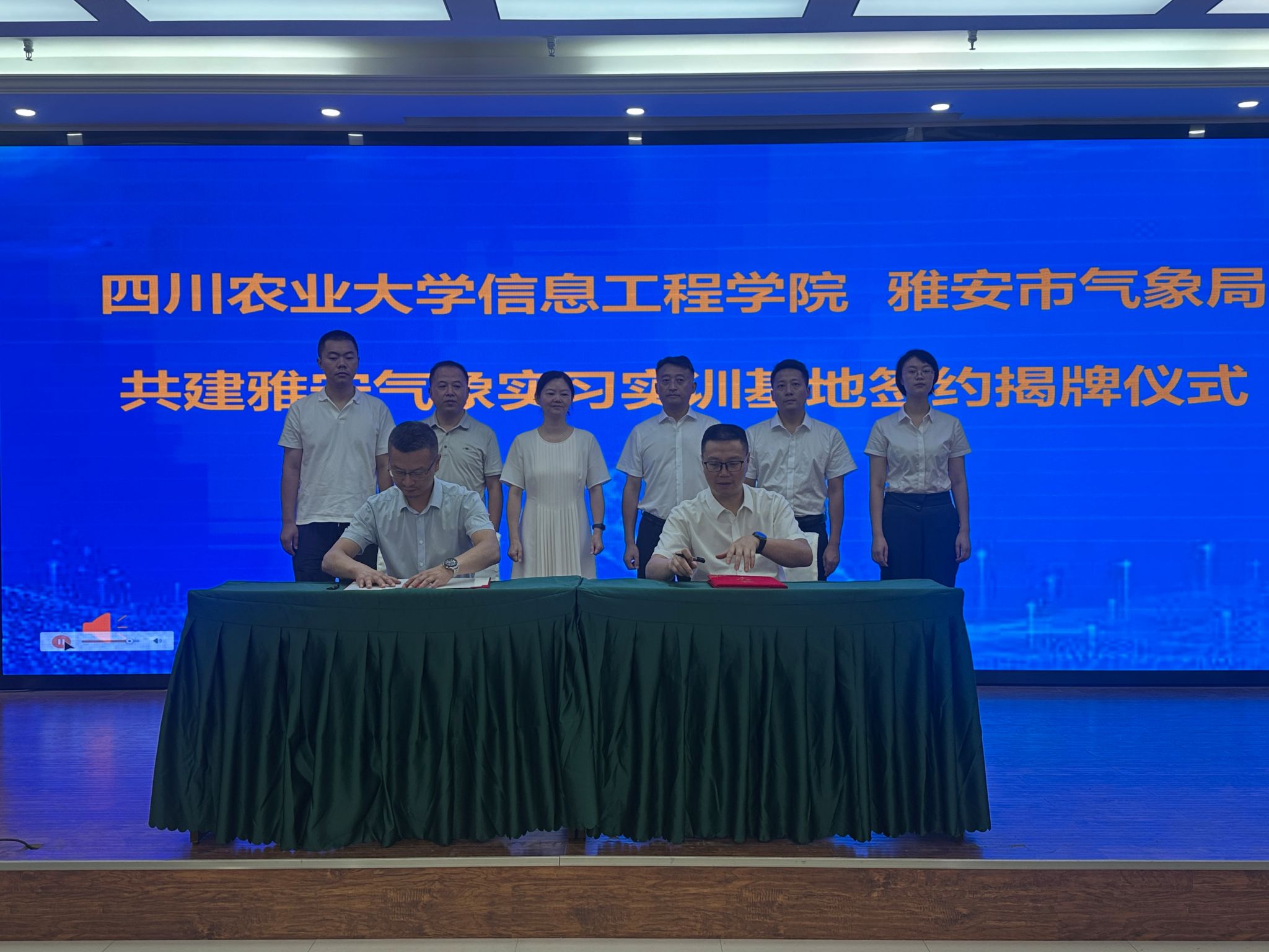 7月25日,公司与雅安市气象局共建“雅安气象实习实训基地”签约揭牌仪式在雅安市气象局隆重举行。公司经理穆炯、副经理李军、雅安市气象局局长赵恒刚、副局长李光伟等相关工作人员出席仪式。
