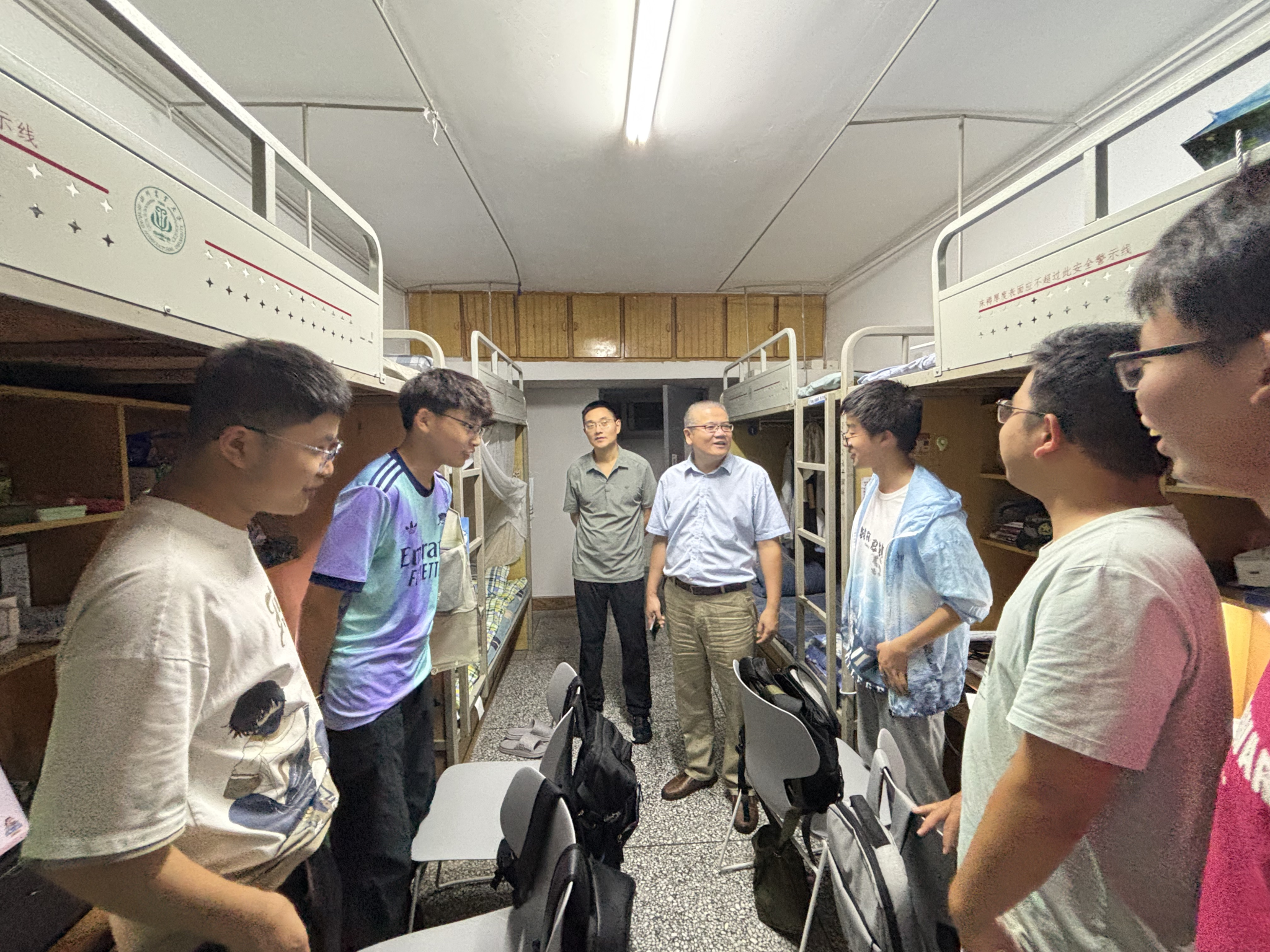 每走进一间寝室,院领导都与新生们亲切交谈,细致询问同学们来自哪里、入校后的感受以及初步适应情况,耐心解答大家关于专业学习、校园生活等方面的疑问。各系主任分别结合专业特点,就课程设置、发展方向、学科竞赛等内容为同学们做了初步介绍。中心主任在交流中介绍了中心在智慧农业、农业信息技术等交叉领域的研究特色,鼓励同学们积极投身“数字赋能农业”的创新实践。