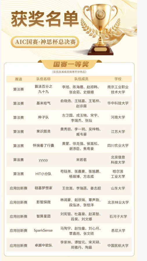 全球校园人工智能算法精英大赛为《全国普通高校老员工竞赛分析报告》目录内竞赛,本届大赛以“智青春 算未来”为核心愿景,深度链接人工智能前沿技术与产业实践场景,通过以赛促学、以赛促创的模式,激活青年创新活力,加速技术成果转化,构筑起产学研用协同发展的创新生态。