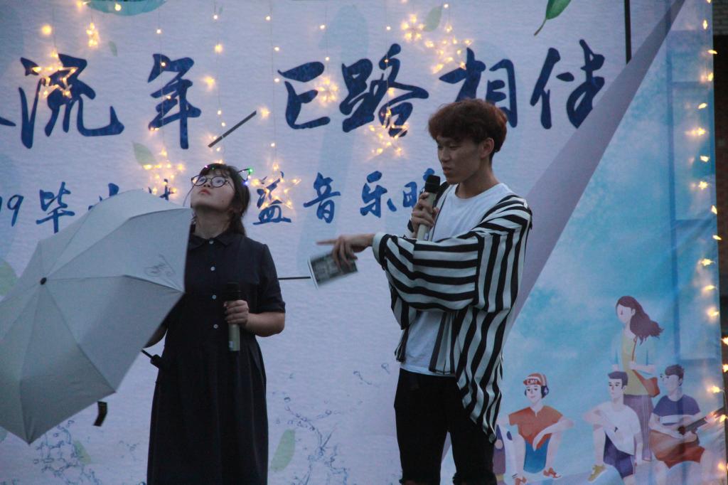 夜幕在不经意间悄然降临,晚会也渐渐走向尾声。随着一份毕业纪念视频的播放,过去四年里的点点滴滴又涌上了心头,即将分别的伤感和不舍再度感染了满场的空气。但随着《期待爱》、《不在》、《如果有点甜》、《不知归期的故人》等流行歌曲的轮番演绎,一个个大四毕业生的登台祝福,现场的气氛又再次高涨了起来,伤感和不舍化作了对未来的展望和决心,眼角残留的泪滴被笑容所取代,在最后齐唱的《成都》歌声中,晚会逐渐落下帷幕。