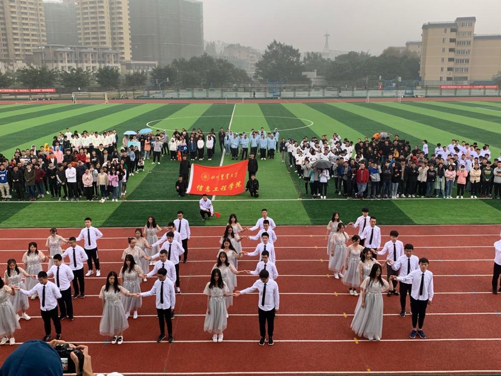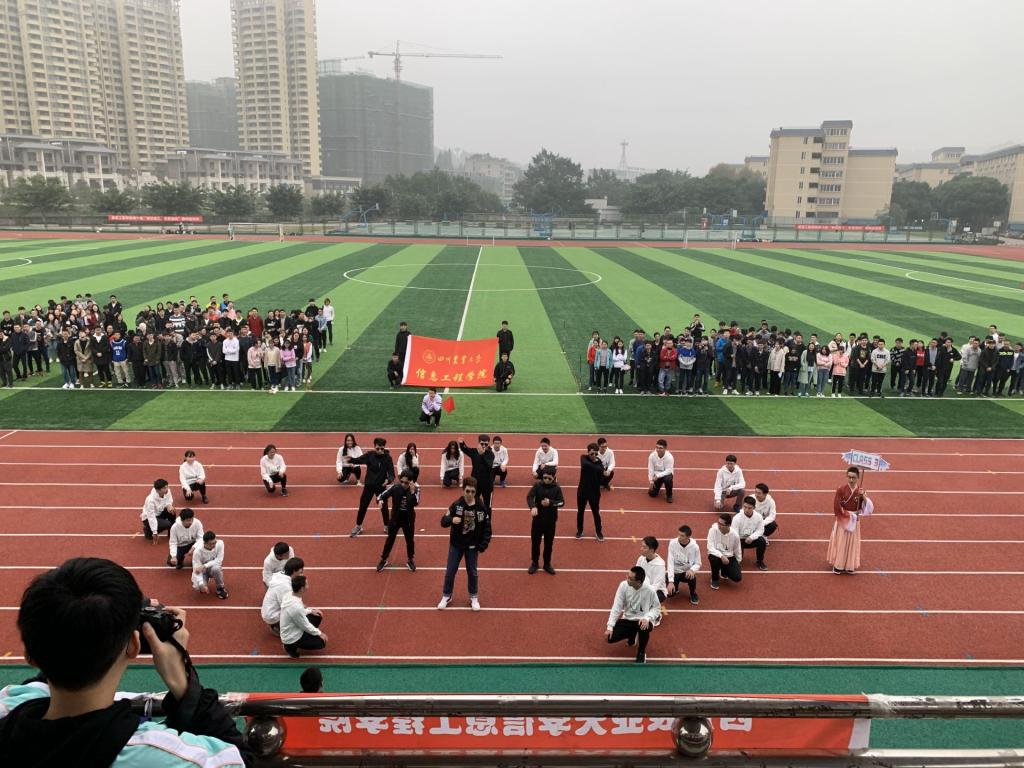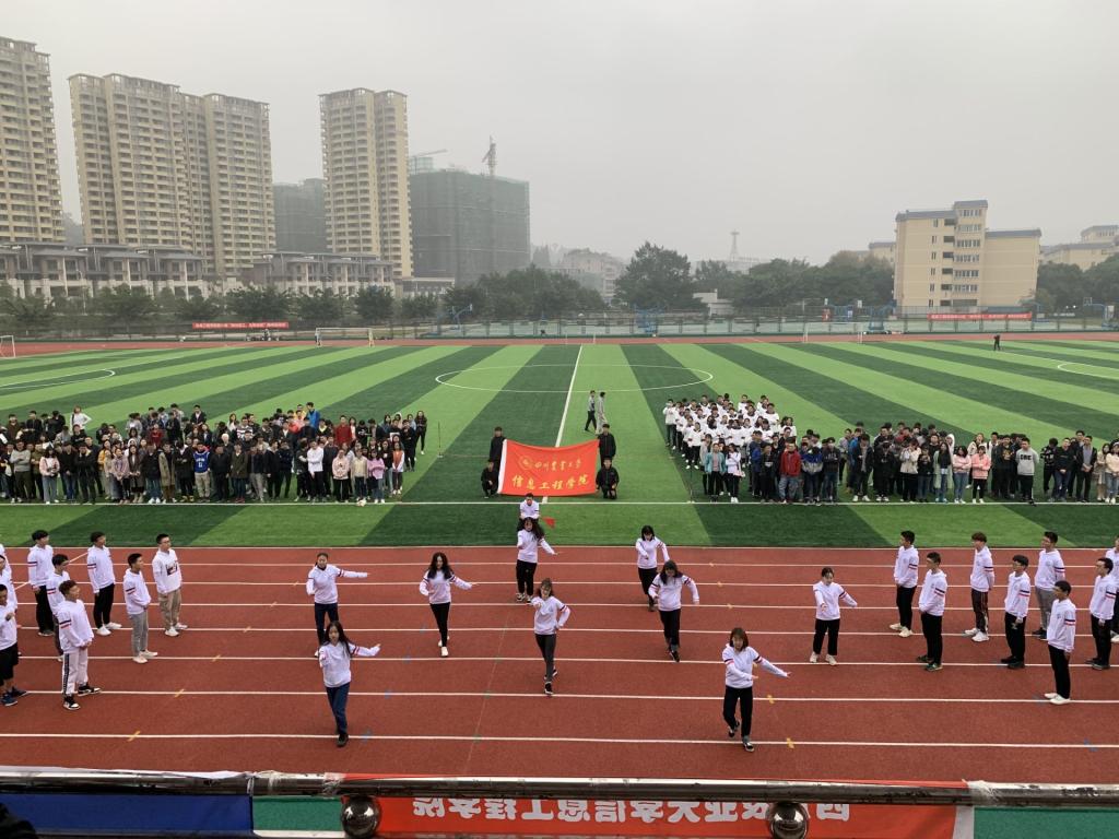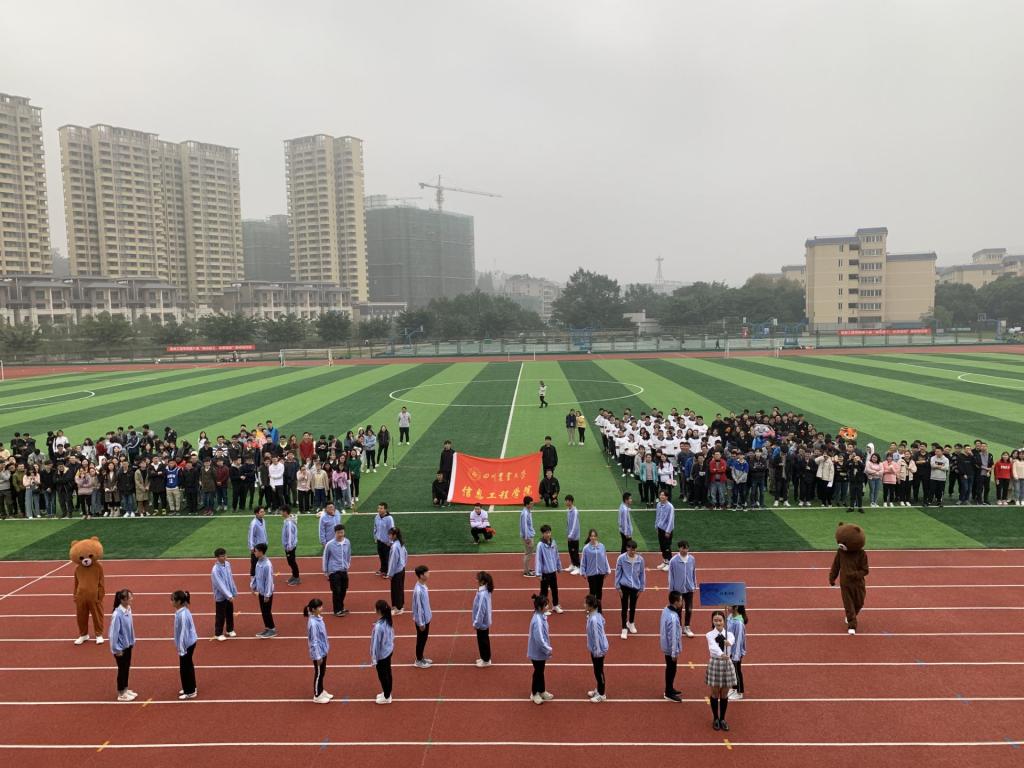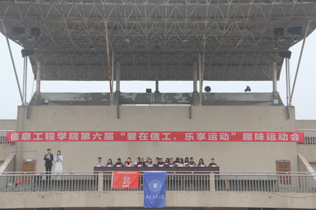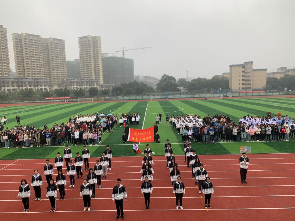 11月9日上午,太阳成集团tyc151cc“爱在信工,乐享运动”第六届趣味运动会开幕式在三区运动场隆重开幕。太阳成集团tyc151cc副经理穆炯,副经理李军,党委办公室主任黄锎靚,党委办公室辅导员,团委员工会主席团以及来自各公司团委员工会主席出席了本届运动会开幕式。全院各年级38个班级,近1000多名同学参加了开幕式。