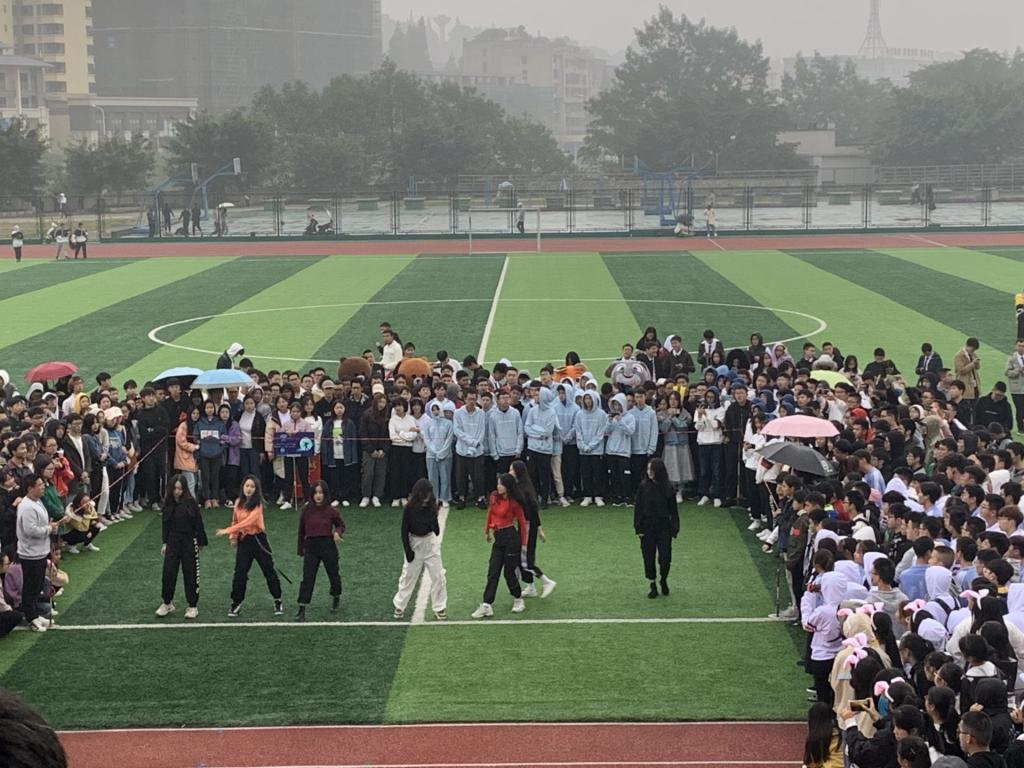 迎着初冬的细雨,和着动人的乐章,8:30各方队准时列阵完毕。护旗手方队身穿整齐的服装,迈着矫健的步伐,器宇轩昂地向主席台走来。伴随着激昂奋进的运动员进行曲,各具特色表演的班级代表队依次走过主席台,同学们蓬勃朝气的面庞与斗志昂扬的口号,展现出团队的青春活力与飒爽英姿,惹得观众频频喝彩。许多小班方阵也以各式服装花式入场给人留下深刻印象,创意十足的小班表演更添趣味。