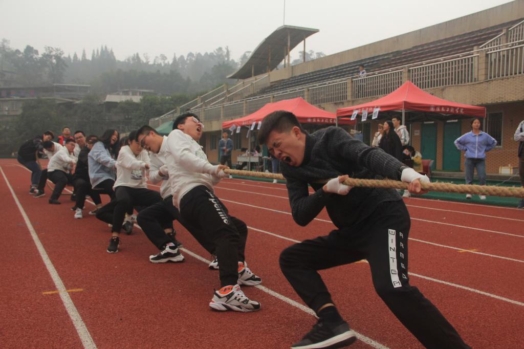 寒风兮兮,看川农校园,学子强健;观此处,鹰击长空,冲锋在前;田径作为趣味运动会必备的竞技项目,也是运动场上一道靓丽的风景线。经过前期的检录与热身,各参赛选手整装待发、跃跃欲试。在起跑线上,运动健儿们一字排开,裁判一声令下,大家犹如离弦之箭,奋力冲向终点。当选手们踏上比赛的征程,观众们的呐喊声、加油声也就此开始,声震远空,现场气氛异常热烈。终点处,有小班同学焦急等待着,接应本班的“战士”,或是搀扶,或是递水,比赛时的紧张早已烟消云散,剩下的只有班级内团结的温情。在经过激烈的角逐后,最终信息1701班邓博文分别卫冕男子100米、200米冠军,物联1903班李雯荣获女子100米冠军、计教1901班李慧敏荣获200米冠军,计教1902班获得本次趣味运动会总积分冠军。此外,万众瞩目的新生拔河赛奖牌争夺赛也在本次趣味运动会上举行,最终计教1902班获得季军、计教1901班获得亚军、物联1901班勇摘桂冠。