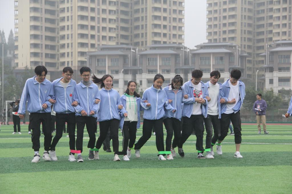 初冬的雅安,少有烈日的“关照”,更多的是雅雨的洗礼,纵使寒气凌人,但丝毫没有影响到同学们的热情。玩转呼啦圈、十人九足、螃蟹背西瓜等经典有趣的项目轮番上阵。其中“十人九足”作为每年趣味运动会必备项目,十个人为了同一个目标而努力,最终17级计科2班、3班、6班以摧枯拉朽之势包揽了该项目的前三名。“螃蟹背西瓜”项目中,两个人背靠背,夹着气球行走,需要同学们具有较高默契合作才能完成。值得一提的是今年的趣味运动会新添了一项50m障碍跑,同学们以团队接力的形式在奔跑过程中要经历原地打转、跳绳、转呼啦圈这三大障碍才能到达终点。此项目及其考验同学们的平衡性、灵活性、身体协调性和团队合作能力,有的同学在原地打转后跑步摇摇晃晃,围观同学都乐在其中,现场笑声一浪高过一浪。