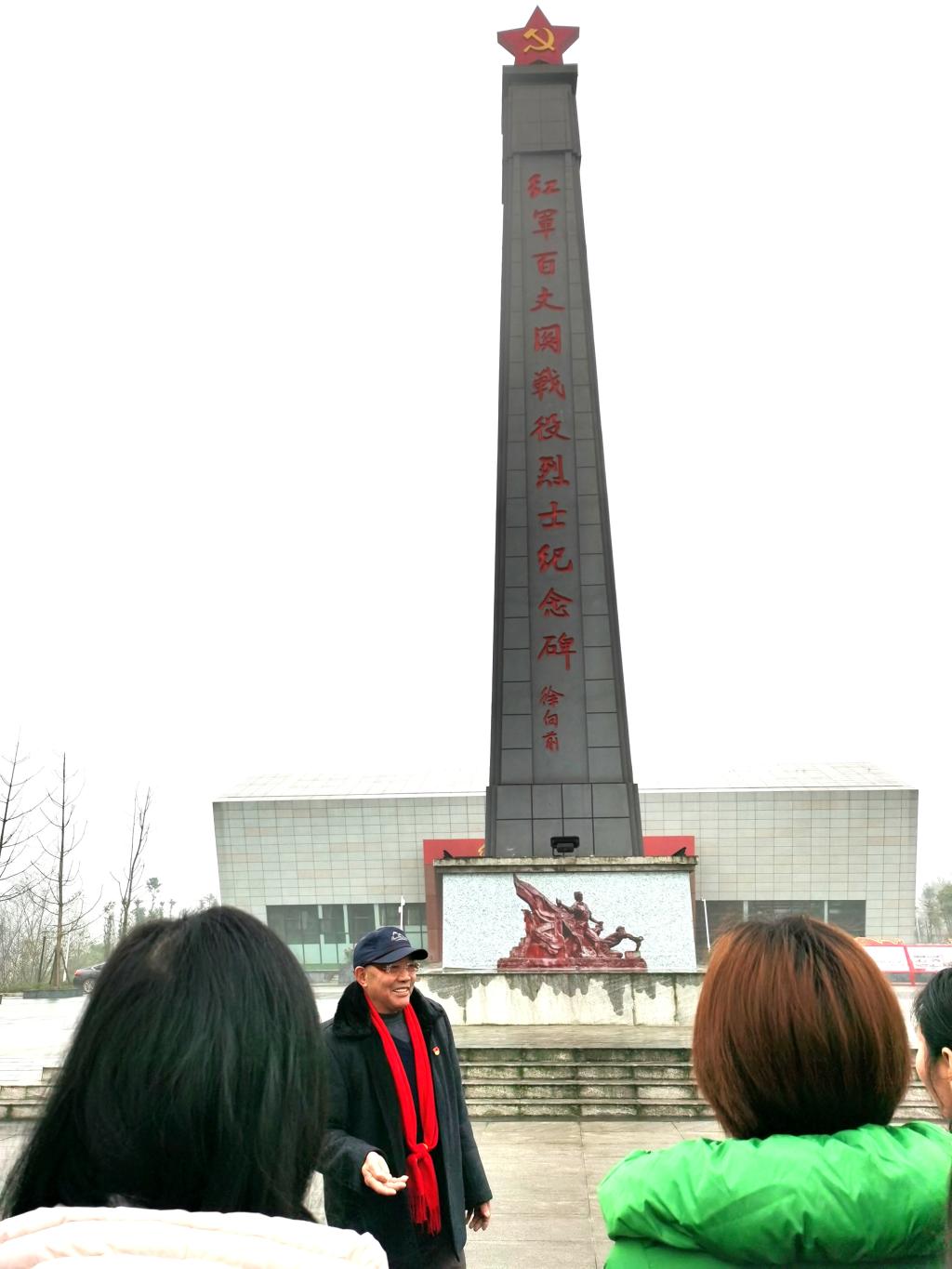 在红军百丈关战役烈士纪念碑前,雅安红色文化学者聂金福老先生为公司一行详细解说了红军百丈关战役的历史背景和战斗经过。他谈到,百丈关战役,20多万国民党川军对战2万红军,参战将领有徐向前、李先念、王树声等,打了7天7夜,是红军南下打得最激烈、最残酷的一场恶战,留下了9878座烈士红军墓。这场战役以较少的兵力消灭敌军1.5万人,牵制了国民党80余团,策应了中央军的顺利北上,促进了红军三大主力胜利会师;确定了毛泽东红军北上方针的正确性,成为了红军从战略进攻转入战略防御的重要历史转折点,为长征的最后胜利作出了贡献。