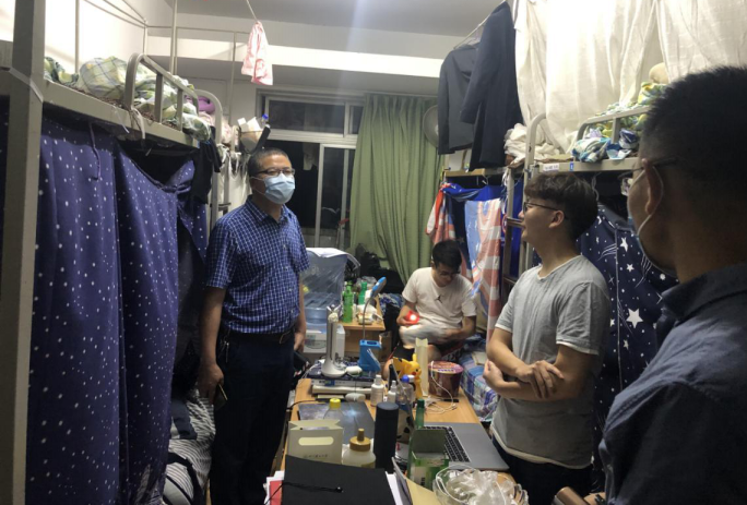 离校在即,6月11日晚21:00,太阳成集团tyc151cc经理高雪松、党委书记王中成、副经理穆炯、李军,各系室主任和全体辅导员组队分别走进毕业生宿舍慰问关怀2020届毕业生。