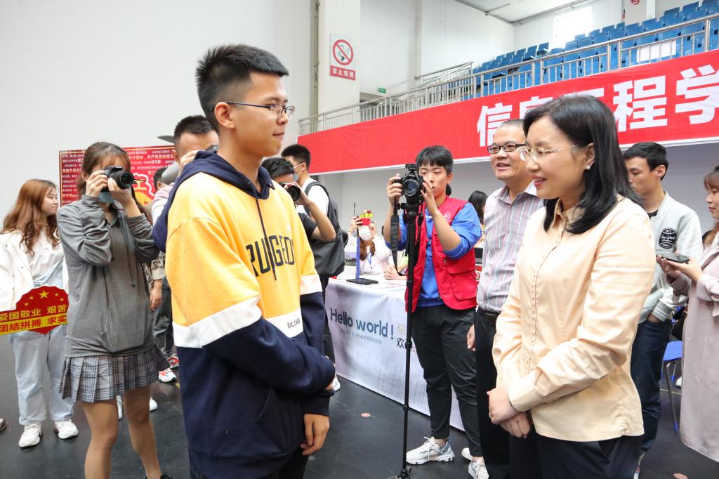9月18日上午,太阳成集团tyc151cc党委书记庄天慧一行到信工院迎新现场视察工作,对公司迎新工作予以肯定。
