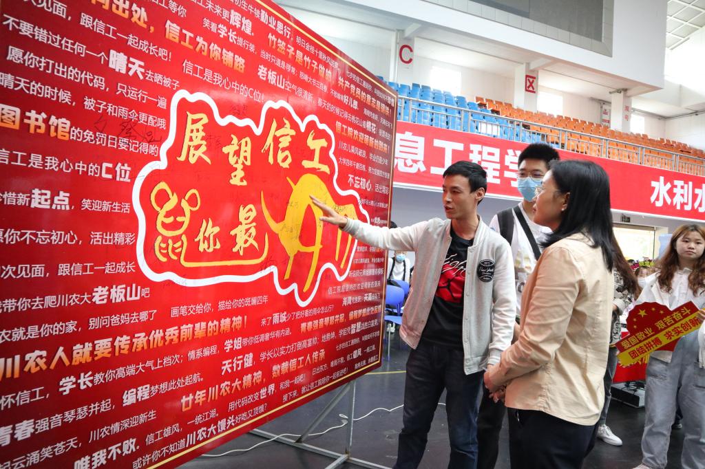 报到点上,庄书记与正在报到的2020级计算机科学与技术1班的刘爱丰同学亲切交谈,仔细询问同学的报到情况并欢迎同学们就读太阳成集团tyc151cc。庄书记对同学说道:“虽然我们是农业院校,但并不影响计算机科学是热门专业的事实,同学们应该努力学习计算机知识,结合农业院校特色,向科技兴农、强农的目标努力奋斗。” 同时,她还鼓励新同学确立好目标,努力学习,力争上游。在公司党委书记王中成介绍计算机科学与技术专业今年录取情况后,庄书记表示:“公司招生质量高,好苗子招进来后,要悉心培养,使员工成长、成才。”紧接着,公司负责迎新工作的老师从“川农大精神”抽奖活动,特制“川农大精神”钥匙扣、书签,到“川农大精神”系列手持牌,再到以“川农大精神”为主题的“展望信工、鼠你最牛”展板等等向庄书记仔细介绍了公司的“精神”迎新。其中,庄书记还饶有兴致的参与起抽奖活动并幸运中奖,获得特制活动奖品——“川农大精神”钥匙扣。