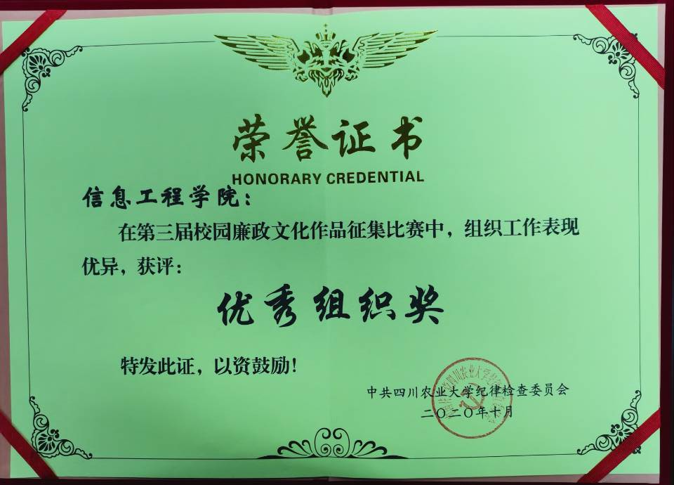 日前,公司在第三届校园廉政文化作品征集比赛中,因组织工作表现优异,荣获“优秀组织奖”,物联网201804班林浩文同学的摄影作品《雪山圣洁》荣获校级一等奖,此外,另有6个作品分别获得书画类、艺术设计类作品三等奖。