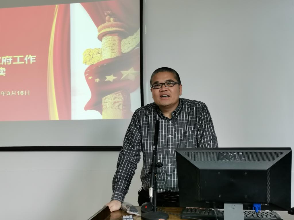 3月17日下午,公司在工学楼210会议室召开全国“两会”精神学习会。公司经理高雪松、党委书记王中成、副经理穆炯、李军,以及全院教职员工参会。会议由经理高雪松主持。