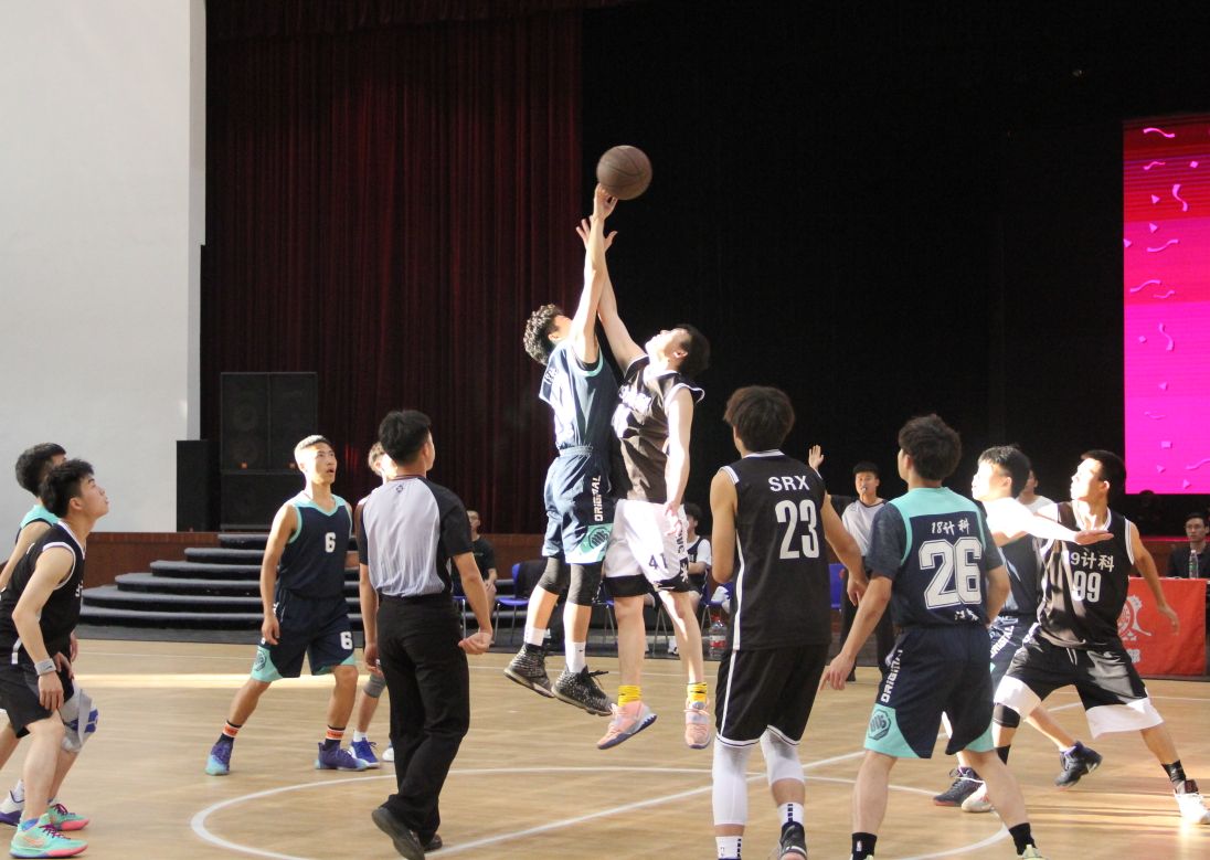 4月29日,激动人心的决赛在雅安校区体育馆拉开序幕。第一场由18计教与19计教展开季军争夺战。比赛开始,18计教率先破局,成功取得首分。19计教亦毫不示弱,频频取分;分差始终僵持。然而,第二节中后段,19计教突然出现沟通问题和大量的失误,18计教抓住机会,一举将比分拉开至22分。面对频频失误,19计教毫不气馁;短暂暂停后,重新调整阵容,队员瞬间气势高涨,逼致对手手忙脚乱,一度将比分追至个位数。第四节,19计教突然陷入犯规麻烦致使主力队员唐帅“6犯毕业”加上队员的“乌龙球”,直接送给对手5分而葬送好局,遗憾与季军擦肩而过,目送19计教获得季军。